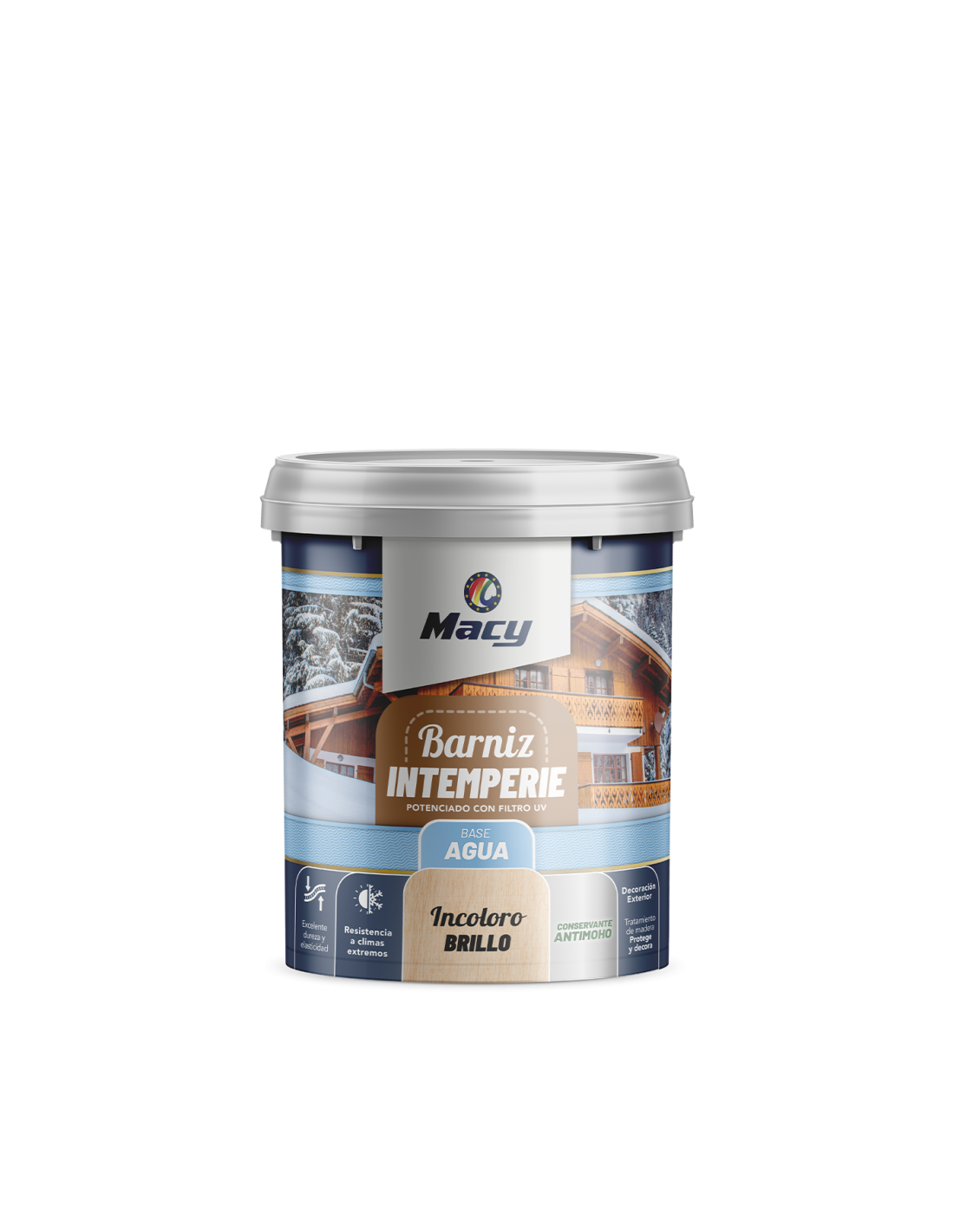 Barniz incoloro al agua de máxima resistencia a la intemperie, formando una película para "impermeabilizar" maderas al exterior en ambientes duros: alta montaña, rural, urbano (chalets, refugios...). Contiene filtros solares y neutralizadores de los radicales libres quese forman en film debido a la acción de los rayos ultravioletas de la luz del sol.