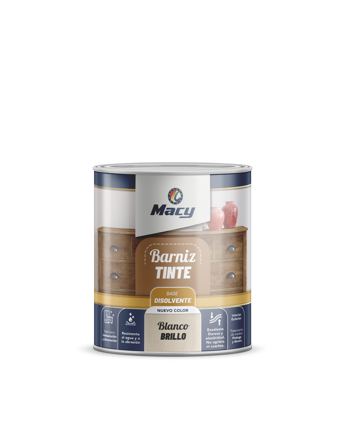 Barniz tinte de poro cerrado de alta decoración y protección interior y exterior. Se utiliza para teñir, barnizar, ennoblecer, restaurar y embellecer toda clase de construcciones de madera.