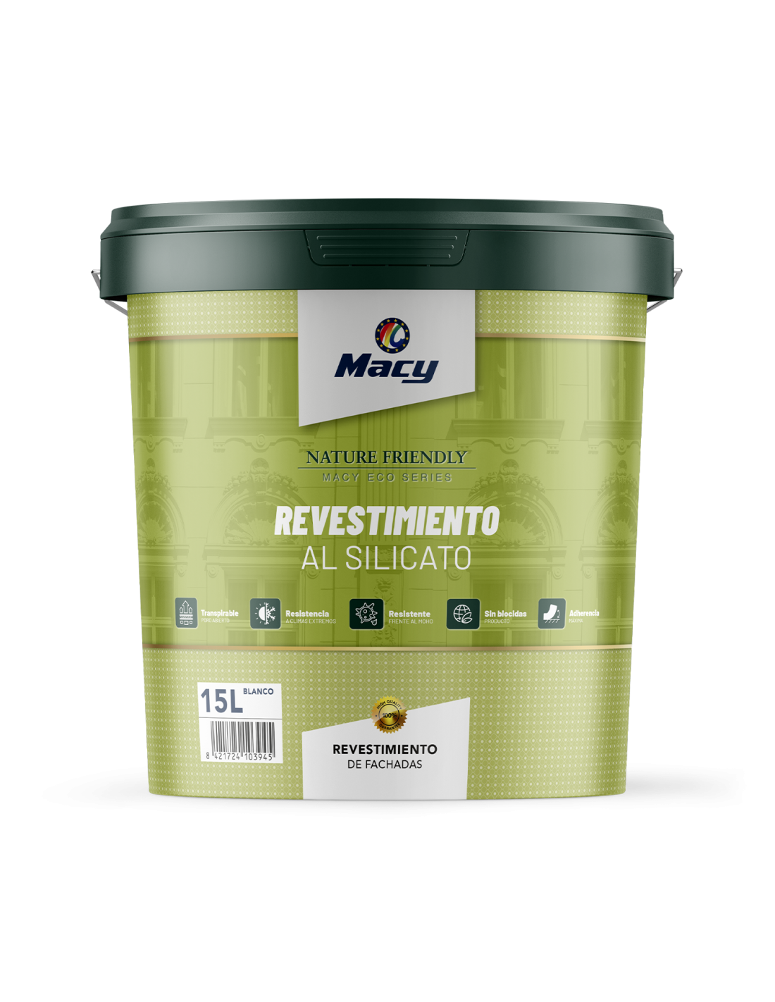 Revestimiento mineral a base de silicato potásico, de alta resistencia a la intemperie incluso en las condiciones climáticas más severas.