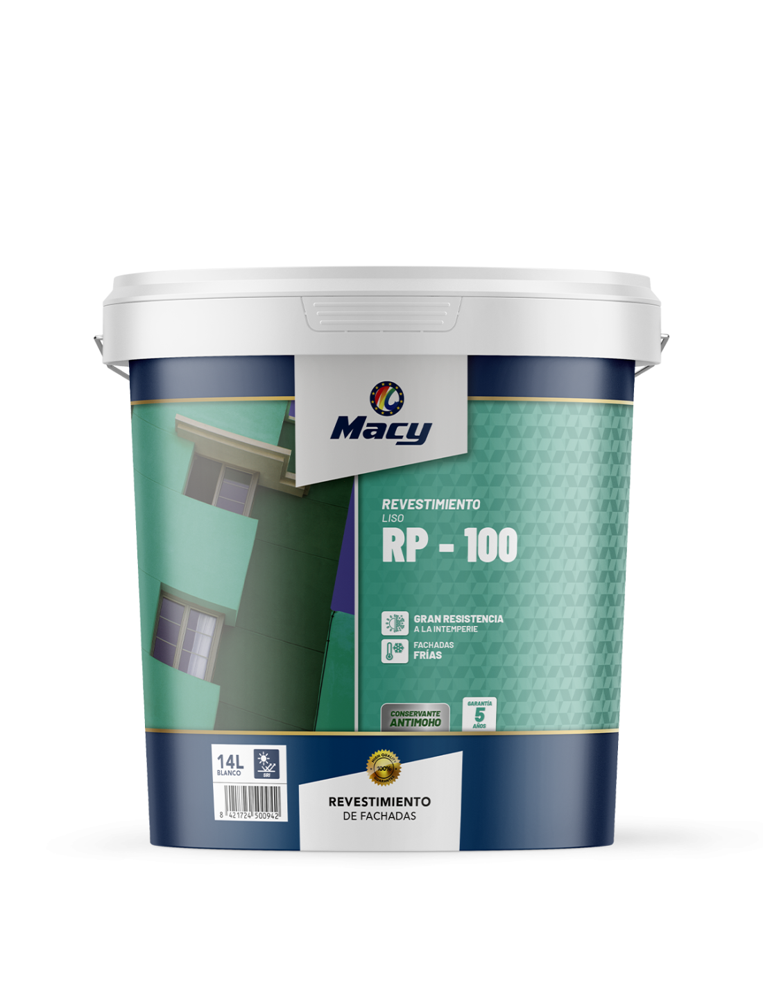 Revestimiento acrílico de terminación suave y lisa. Ofrece un acabado premiun perfecto para fachadas e interiores donde se busque un acabado de calidad, con una excelente opacidad y resistencia a los UV. El REVESTIMIENTO RP-100 forma una película ultrarreflectante, lo que reduce la transmisión de calor hacia el interior del edificio, a su vez, reduce el efecto Isla de calor gracias a su baja emisividad.