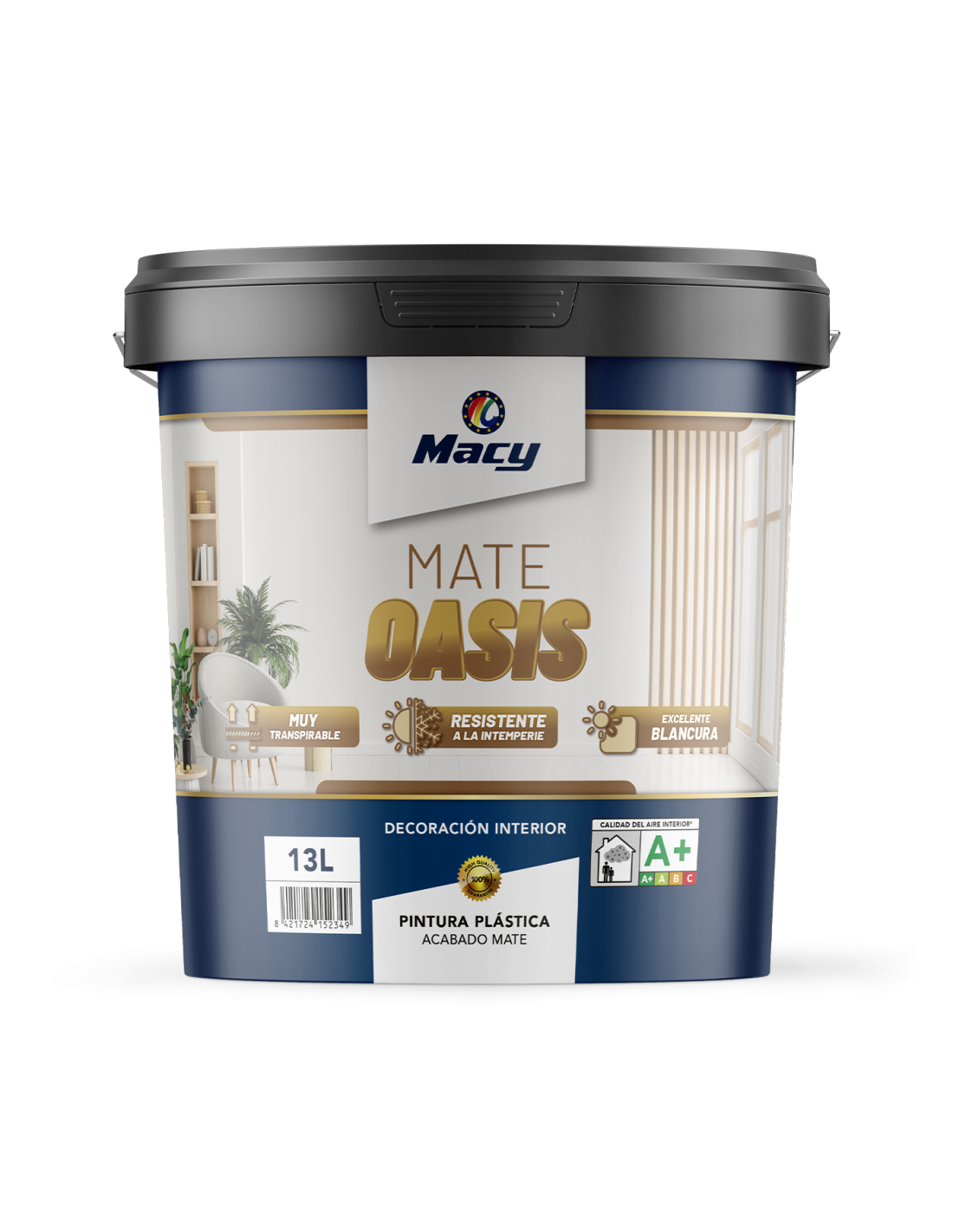 Pintura plástica para interiores y exteriores. Excelente blancura y alto poder cubriente.