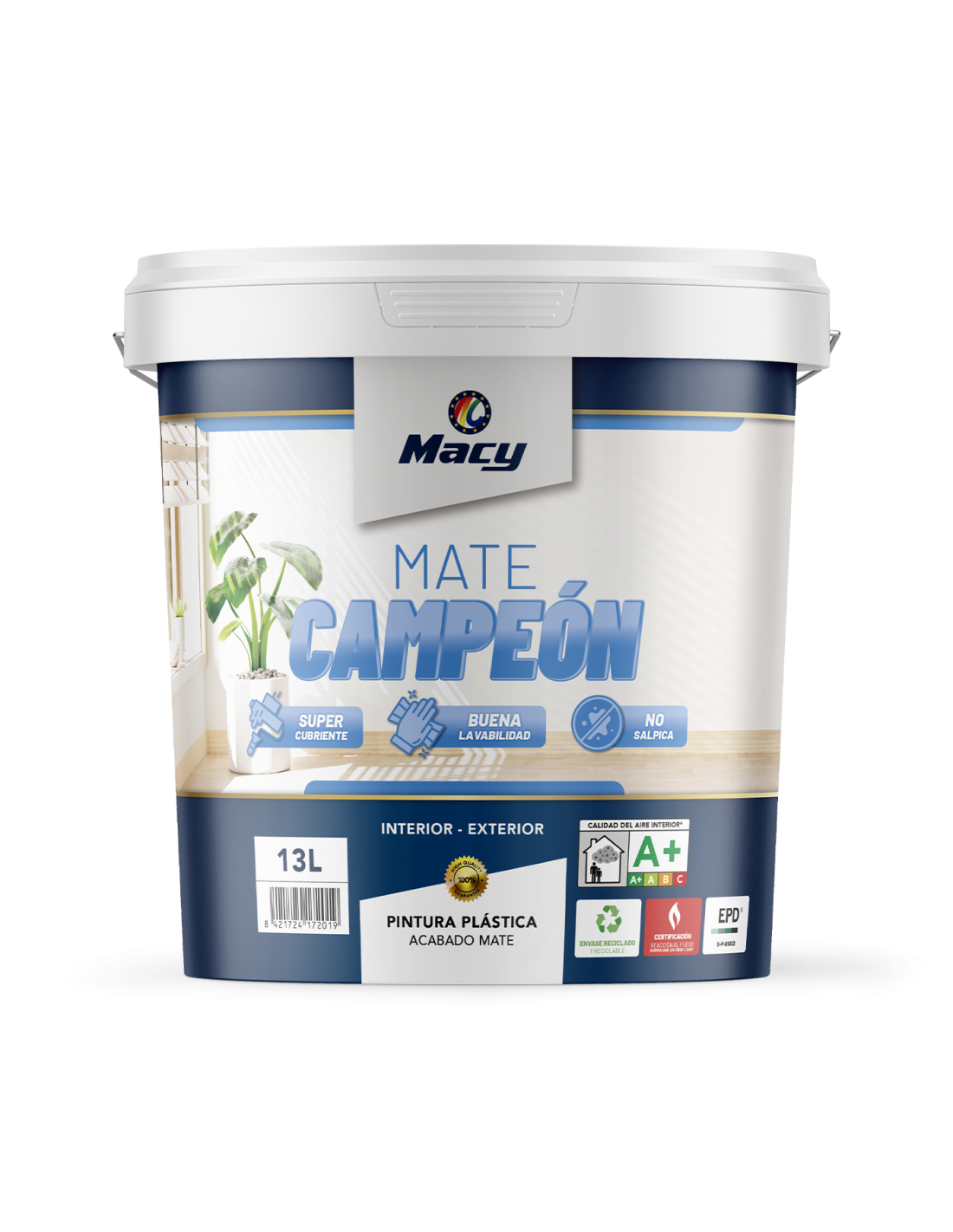 Pintura mate para interiores y exteriores, con una excelente blancura y un gran poder cubriente.